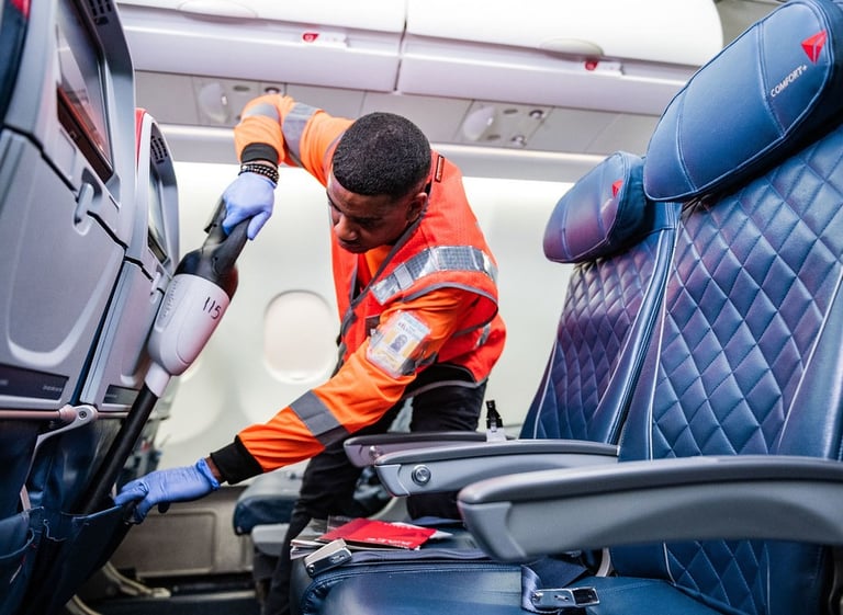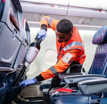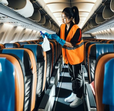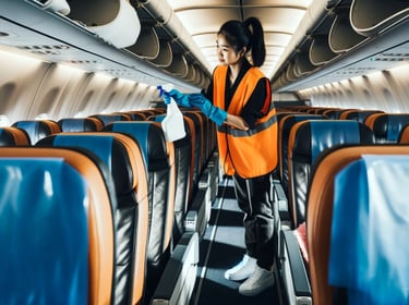 L’agent de nettoyage avion intervient dans la remise en état des cabines aéronefs entre les vols.